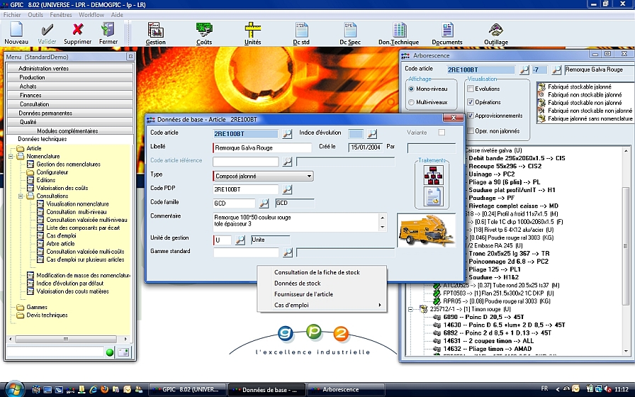 - Paramétrage des menus.